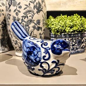 Design Gracioso: Representa a leveza e a beleza da natureza de forma elegante. Cor Clássica: Azul e branco, um padrão atemporal que se integra a diversas decorações. Material Nobre: Fabricado em porcelana resistente e com acabamento de alta qualidade. Versatilidade: Ideal para decorar qualquer ambiente, adicionando um toque delicado. Presente Encantador: Uma excelente opção para presentear amantes de pássaros e decoração clássica.