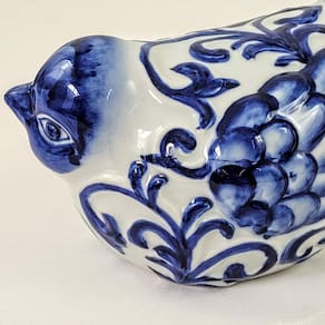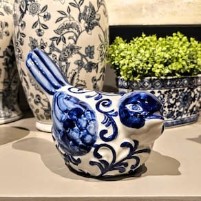 Design Gracioso: Representa a leveza e a beleza da natureza de forma elegante. Cor Clássica: Azul e branco, um padrão atemporal que se integra a diversas decorações. Material Nobre: Fabricado em porcelana resistente e com acabamento de alta qualidade. Versatilidade: Ideal para decorar qualquer ambiente, adicionando um toque delicado. Presente Encantador: Uma excelente opção para presentear amantes de pássaros e decoração clássica.