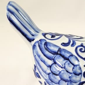 Altura Aproximada: 15,0 cm Largura Aproximada: 20,0 cm Profundidade Aproximada: 13,0 cm Peso: 635 g Material: Porcelana Cor: Azul e Branco Conteúdo da Embalagem: 1 Pássaro Decorativo