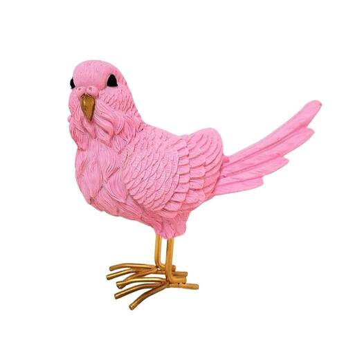 Pássaro Decor Rosa e Dourado em Resina e Metal 16cm
