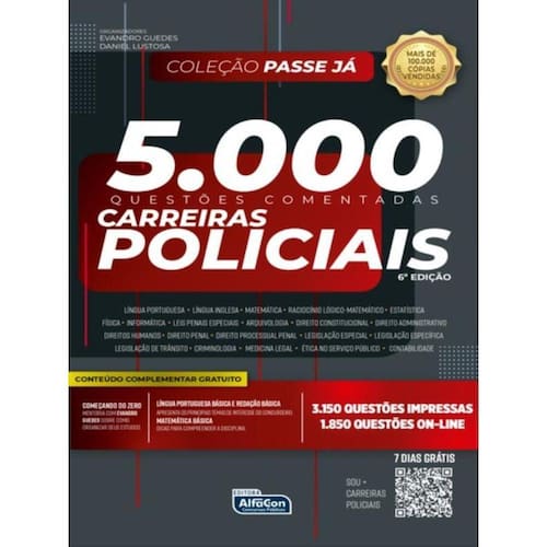 A obra Best-seller em livros para provas e concursos públicos, o Passe Já – Carreiras Policiais chega à sua 6ª edição trazendo ao concurseiro o conteúdo ideal para quem busca a aprovação. O livro é composto por 5.000 questões gabaritadas e comentadas por especialistas no assunto, de modo a auxiliar a compreensão do conteúdo e a sua fixação. Nesta edição, as questões estão organizadas por temas, bancas e ano – uma excelente maneira de preparar o concurseiro e ajudá-lo a atentar ao que é demandado pelas principais bancas. Para desenvolver esta obra, as questões foram selecionadas com base na complexidade de cada assunto (ao todo, são 20 disciplinas), na extensão dos conteúdos programáticos demandados nos editais e no conhecimento técnico e conceitual exigidos nas provas. Para reforçar os estudos, este Passe Já conta com materiais exclusivos, que aprofundarão os conhecimentos do concurseiro em pontos relevantes e bastante cobrados em provas: o leitor terá acesso a cursos completos – e gratuitos – de Redação Básica, Língua Portuguesa Básica e Matemática Básica. Além disso, para nortear seus estudos, há ainda o curso “Começando do Zero”, que traz vídeos de mentoria e preparação com Evandro Guedes. CONTEÚDOS CONTEMPLADOS Língua Portuguesa Língua Inglesa Matemática Raciocínio Lógico-matemático Estatística Física Informática Direito Constitucional Direito Administrativo Direitos Humanos Direito Penal Direito Processual Penal Legislação Especial Legislação Específica Legislação de Trânsito Arquivologia Criminologia Medicina Legal Ética no Serviço Público Contabilidade ON-LINE Cursos básicos de: Língua Portuguesa, Redação e Matemática. “Começando do Zero”: mentoria de estudos com Evandro Guedes. Os cursos on-line estão disponíveis para o leitor POR MEIO DO CÓDIGO DE RESGATE, disponível na orelha do livro.