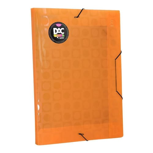 Pasta Aba e Elástico PP Ofício 332mmx232mmx20mm DAC Color Bubble Laranja Os produtos DAC Color Bubble são vibrantes e tem um conceito mega estiloso. A pasta tem espessura super resistente, aba elástica e maior durabilidade.