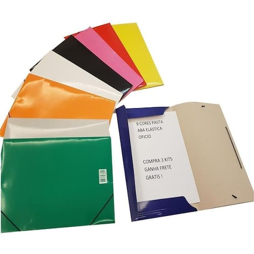Cores disponíveis azul, amarelo, verde, branco, preto, vermelho, cinza, rosa e laranja Pasta aba elástica