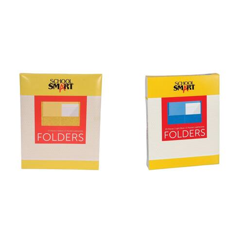 - O kit inclui: 25 pastas amarelas de 2 bolsos e 25 pastas extra grandes em azul claro