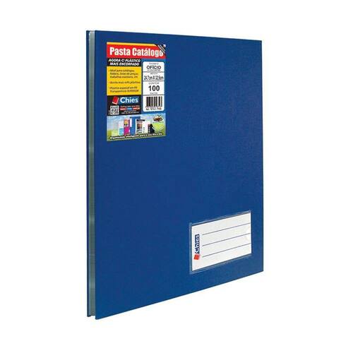 Pasta catálogo ofício 172 Azul com 100 plásticos - Hemon