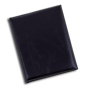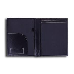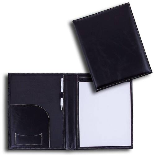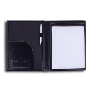 Pasta de Convenção confeccionada em Couro Legítimo Preto contendo: -Aba para papéis e porta-cartão -Porta-bloco com bloco de anotações A4 contendo 20 folhas-Porta Caneta Caneta não inclusa