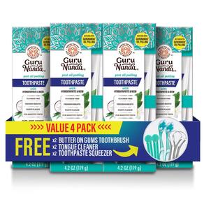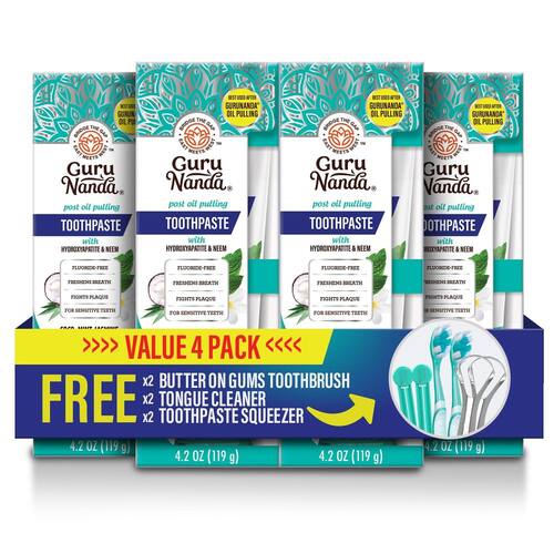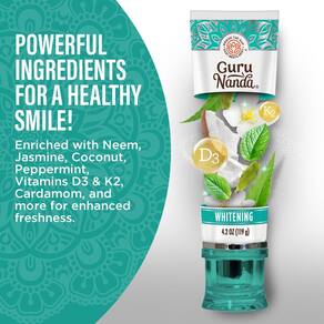 Enriquecido com 5% de microhidroxiapatita, o próprio material que compõe seus dentes, e misturado com sal marinho celta, que possui mais de 85 minerais, nossa pasta de dente é feita para funcionar sinergicamente. Possui extratos do antigo remédio ayurvédico, nim e óleos essenciais da fazenda para garrafa historicamente utilizados em higiene bucal. Além disso, é fortificado com um poderoso trio de vitaminas — K2, D3 e E — para melhorar sua rotina diária de saúde bucal. Mergulhe em uma experiência refrescante enraizada na natureza e aperfeiçoada pela ciência. - Fórmula fortificante e livre de fluoretos: pasta de dente GuruNanda com hidroxiapatita e nim, auxilia na remineralização e limpa profundamente seus dentes, melhorando a saúde do esmalte e iluminando seu sorriso. - MÚLTIPLOS BENEFÍCIOS PARA DENTES SENSÍVEIS: Esta pasta de dente de hidroxiapatita ajuda efetivamente a remover placas e detritos, promove gengivas felizes e auxilia na higiene oral geral para um sorriso mais saudável e brilhante. - Ingredientes naturais: Feito com ingredientes naturais, esta pasta de dente mistura nim, jasmim, óleos essenciais e vitaminas D3, K2, E com sal marinho celta rico em minerais para uma limpeza suave e eficaz sem produtos químicos agressivos. - Como usar: Escove os dentes duas vezes ao dia com uma quantidade do tamanho de ervilha por 2 minutos (30 segundos em cada quadrante). Para melhores resultados, use nossa pasta de dente após extrair óleo com a ampla variedade de produtos para extração de óleo da GuruNanda. - Recomendado por dentistas: Sem OGM e feito com ingredientes limpos e naturais, nossa pasta de dente é livre de produtos químicos agressivos como SLS, flúor, parabenos, corantes artificiais, sabores e conservantes. Recomendado por dentistas, oferece uma limpeza profunda enquanto é suave em dentes e gengivas sensíveis.
