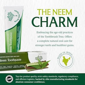 O cuidado bucal, quando feito corretamente, resulta não apenas em um sorriso brilhante, mas também em uma boa saúde geral. Nossa pasta de dente de nim é uma homenagem a esse entendimento, combinando a sabedoria milenar da Ayurveda com as necessidades atuais de higiene dental. Neem, renomada nas práticas ayurvédicas, tem sido uma pedra angular de higiene bucal, especialmente na Índia, onde é reconhecida como a "árvore da escova de dentes". Seus galhos têm sido utilizados por gerações, garantindo que os sorrisos permaneçam radiantes e gengivas saudáveis. Características e benefícios: Extratos supercríticos de folha e casca de nim Suporta dentes e gengivas saudáveis Vegano. Livre de crueldade Sem flúor Sem sulfato. Sem xilitol Sem glúten. Sem cores ou sabores artificiais Adequado para crianças e diabéticos Extrato supercrítico de folha de nim e casca Central para nossa formulação é a extração supercrítica de folha e casca de nim. Estes extratos potentes são conhecidos por ajudar no combate à placa bacteriana e possíveis cáries, garantindo que os dentes permaneçam não apenas limpos, mas também fortes e saudáveis. Pasta de dente sem flúor Mas não se trata apenas do que colocamos – é também sobre o que deixamos de fora. Nosso compromisso sem flúor significa que você está recebendo cuidados bucais que usam ervas naturalmente poderosas sem a adição de ingredientes debatidos. Ingredientes naturais 100% puros. Defendemos a pureza, e nossa pasta de dente reflete esse compromisso. Seja a ausência de sulfatos, xilitol ou elementos artificiais, ou nossas posições veganas e livres de crueldade inabaláveis, todos os aspectos são selecionados com cuidado. Originado de forma autêntica. Feita autenticamente na Índia, esta pasta de dente é mais do que um produto de cuidados dentários. É um legado, uma jornada de volta às tradições enraizadas na história. Convida você a experimentar um ritual, um ato diário de cuidado que transcende a mera rotina. Junte-se à Neem Tree Farms para tornar esta rica herança uma parte da sua vida diária. - Fórmula livre de flúor: priorizando ingredientes limpos para uma saúde bucal ideal, nossa pasta de dentes de ervas de nim é uma pasta de dente sem flúor, sem flúor ou cores ou sabores artificiais, oferecendo uma abordagem natural para cuidados dentários que não compromete a qualidade. - Sorriso saudável à base de ervas: aproveitando os benefícios potentes de extratos supercríticos de folha de nim e casca, nossa pasta de dente totalmente natural (sem flúor) é especialmente formulada para sorrisos brilhantes e suporta gengivas saudáveis, unindo antigas tradições herbais com as necessidades dentárias modernas. - Combate placas e cáries: nossa pasta de dente sem flúor é segura para adultos, adolescentes, crianças, diabéticos com extratos de sabor natural de hortelã-pimenta, cravo e estévia. Projetada para combater o acúmulo de placa bacteriana e cáries, esta pasta de dente natural ajuda os dentes a permanecerem limpos e fortes. - Puro, limpo e ético: na Neem Tree Farms, nosso compromisso com a pureza orienta cada decisão de ingrediente. Nossa pasta de dente de nim é livre de flúor, sulfatos, xilitol, glúten e aditivos artificiais, mantendo os padrões veganos e livres de crueldade para higiene bucal. - Herança de Neem: Feito autenticamente na Índia, o epicentro do legado aiurvédico centenário de Neem, nossa pasta de dente encapsula as ricas tradições da planta medicinal conhecida como Árvore da Escova de Dentes, oferecendo uma solução holística de higiene bucal para dentes e gengivas mais saudáveis.