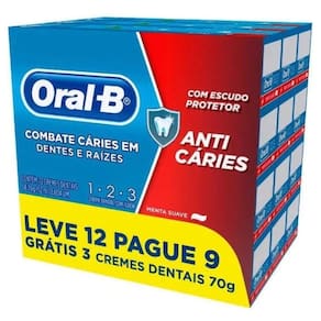 O Creme Dental Oral-B 123 Menta Suave 70g cuida da gengiva e dos dentes com total eficiência, prevenindo a gengivite antes mesmo que ela se desenvolva. Diferentemente das pastas de dente comuns, ela ajuda a eliminar a placa ao longo da linha da gengiva e a interromper o ciclo da gengivite. Oral-B é uma das marcas mais recomendadas pelos dentistas. Seus ingredientes ativos garantem boca e dentes mais saudáveis, e um hálito suavemente refrescante. Seu sabor garante uma sensação de higiene e frescor por mais tempo.