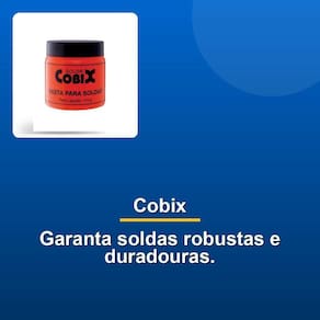A Cobix Pasta Soldar Cobix 110g é indicada para facilitar soldagens com contato elétrico ideal entre as peças. Sua fórmula de alta qualidade proporciona soldas confiáveis, com resistência mecânica superior e excelente custo-benefício. Os agentes oxidantes especiais favorecem a aderência do estanho ao metal, resultando em soldas robustas e duradouras, mesmo em superfícies oxidadas. É recomendada para uso em tubos, equipamentos de refrigeração e terminais de baterias, oferecendo praticidade no dia a dia de trabalho. A Cobix é reconhecida no segmento de soldagem por processos produtivos com controle de qualidade rigoroso.