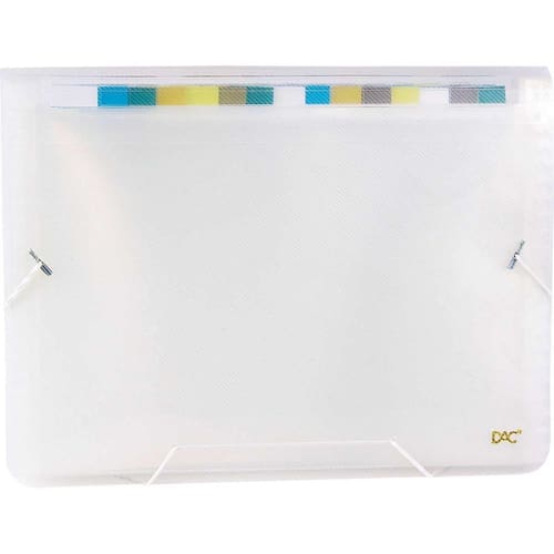 Esta pasta é ideal pois conta com divisões, separando em ordem alfabética ou importância e as etiquetas coloridas ajudam na identificação.