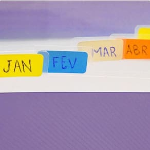 Organize seus documentos com mais praticidade. Esta pasta sanfonada é ideal para usar em necessidades anuais pois conta com 12 divisões, exatamente um espaço para cada mês do ano, ou pode separar por ordem alfabética, numérica, por assunto de importância ou qualquer ordem lógica, que podem ser identificadas com as etiquetas coloridas.