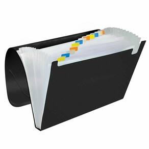 Esta pasta sanfonada é ideal para usar em necessidades anuais pois conta com 12 divisões, exatamente um espaço para cada mês do ano, ou pode separar por ordem alfabética, numérica, por assunto de importâncio ou qualquer ordem lógica, que podem ser identificadas com as etiquetas coloridas.