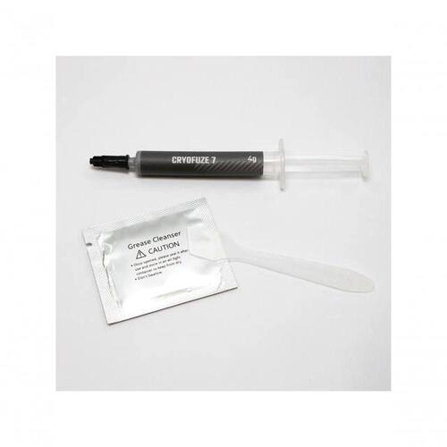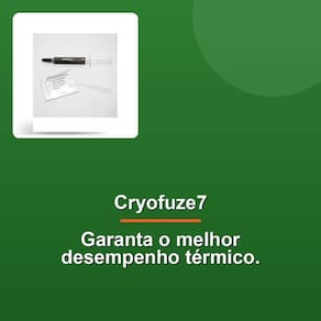 Pasta Térmica Cryofuze7 4g Eleve a temperatura do seu desempenho com a Pasta Térmica Cryofuze 5! Agora com cores vibrantes, a Cryofuze 5 não apenas mantém a eficiência térmica incomparável, mas também permite personalizar seu setup e destacar sua identidade. Desfrute de desempenho térmico superior com a baixa impedância térmica da Cryofuze 5, que reduz a resistência ao calor e proporciona adesão superior aos componentes. Sua fórmula não corrosiva garante a segurança de todos os seus componentes, enquanto a condutividade térmica excepcional garante desempenho ainda mais acentuado para sistemas de alto desempenho. Composto por tecnologia inovadora, o Cryofuze 5 mantém estabilidade térmica de -50C a 240C. Seus componentes multicolores são a prova de que estilo e performance caminham lado a lado. A embalagem compacta garante menor impacto ambiental com menor emissão de CO2 durante o transporte, sem pesar no seu bolso.