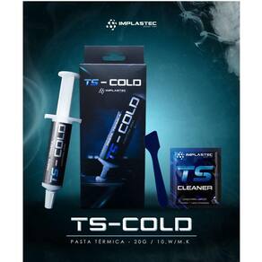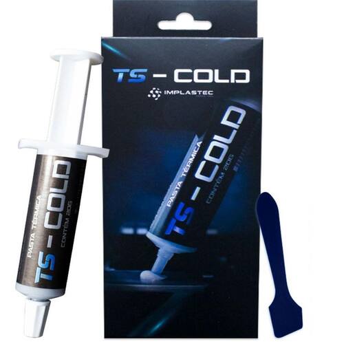 Produto profissional e completo para aplicação: 01 pasta térmica ts cold - 20 gramas; 01 espátula de plástico para auxiliar a retirada da pasta térmica antiga e também ajudar na nova aplicação, sachês para limpeza e 20 adesivos.