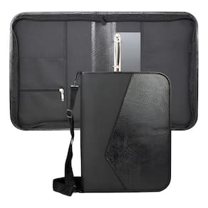 Pasta Universitária Couro Preto Alça E Zíper Incorpast