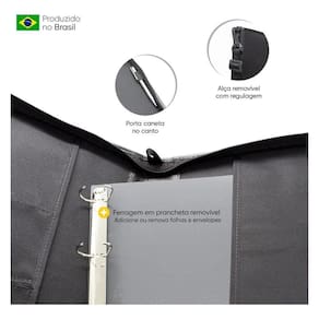 Organização Inteligente: Bolsas internas com 2 divisórias e argolas removíveis para total flexibilidade.
