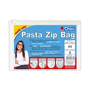 Pasta Zip Bag Chies A5 com 05 Unidades Cristal 26x18cm