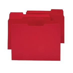 - O papel vermelho de espessura padrão é duradouro e durável. Três abas superiores cortadas em 1/3 permitem amplo espaço para etiquetagem para manter seus arquivos organizados. Pastas tamanho carta armazenam arquivos importantes com facilidade. 24 pastas armazenam e organizam documentos vitais. Contém 10% de conteúdo total reciclado.