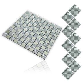 Transforme seus ambientes com esta pastilha decorativa feita de vidro verdadeiro, combinando brilho, textura e um visual moderno. O design em padrão geométrico cria um efeito visual sofisticado, com peças retangulares em tom prata e detalhes texturizados que adicionam profundidade e requinte.