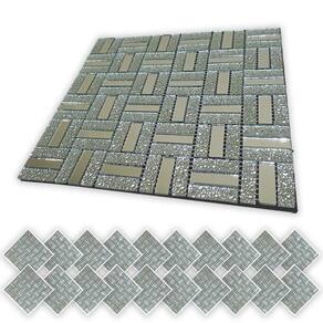 Transforme seus ambientes com esta pastilha decorativa feita de vidro verdadeiro, combinando brilho, textura e um visual moderno. O design em padrão geométrico cria um efeito visual sofisticado, com peças retangulares em tom prata e detalhes texturizados que adicionam profundidade e requinte.