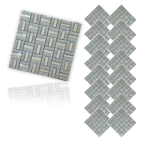 Transforme seus ambientes com esta pastilha decorativa feita de vidro verdadeiro, combinando brilho, textura e um visual moderno. O design em padrão geométrico cria um efeito visual sofisticado, com peças retangulares em tom prata e detalhes texturizados que adicionam profundidade e requinte.