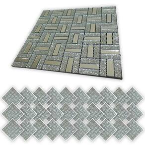 Transforme seus ambientes com esta pastilha decorativa feita de vidro verdadeiro, combinando brilho, textura e um visual moderno. O design em padrão geométrico cria um efeito visual sofisticado, com peças retangulares em tom prata e detalhes texturizados que adicionam profundidade e requinte.