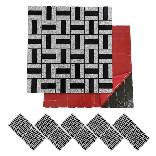 Transforme seus ambientes com esta pastilha decorativa feita de vidro verdadeiro, combinando brilho, textura e um visual moderno. O design em padrão geométrico cria um efeito visual sofisticado, com peças retangulares em tom prata e preto e detalhes texturizados que adicionam profundidade e requinte.