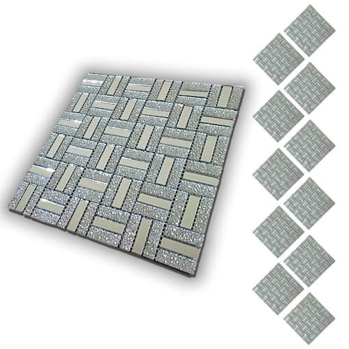 Transforme seus ambientes com esta pastilha decorativa feita de vidro verdadeiro, combinando brilho, textura e um visual moderno. O design em padrão geométrico cria um efeito visual sofisticado, com peças retangulares em tom prata e detalhes texturizados que adicionam profundidade e requinte.