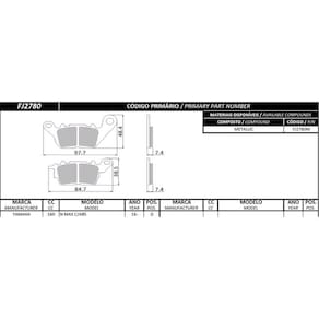 A Pastilha de freio Fischer FJ 2780 C tem um bom poder de frenagem, com a tendência de reduzir os ruídos.