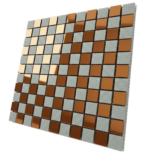 Transforme seus ambientes com esta pastilha decorativa feita de vidro verdadeiro, combinando brilho, textura e um visual moderno. O design em padrão geométrico cria um efeito visual sofisticado, com peças retangulares em tom dourado e detalhes texturizados que adicionam profundidade e requinte.