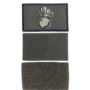 Sutaches bordados de baixa visibilidade são Confeccionados em lona em nylon pvc 79% poliéster e 21% pvc resinado, na cor verde militar pantone 19-0512 tcx ivy green, bordados em linha preta pantone black c e linha verde-clara pantone 17-1310 Tcx timber wolf, sendo aplicados por meio de fecho de contato na cor verde-oliva.