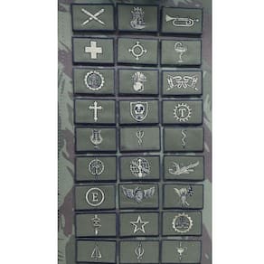 Bordados de baixa visibilidade possuem as dimensões: 50 mm x 30 mm, com borda preta pantone black c Marca: Sene Militar