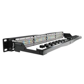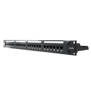 Patch panel Categoria 6 desenvolvido para sistemas de cabeamento estruturado, ideal para organização e distribuição de conexões de rede com alto desempenho. Possui 24 portas, guia traseira para melhor gerenciamento de cabos e estrutura compatível com racks padrão 19.