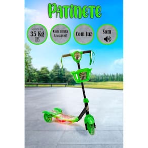 O Patinete DM Toys Verde Dinossauro com cestinha é perfeito para a criançada! Possui três rodinhas de silicone garantindo maior estabilidade e segurança na aventura da brincadeira. Ele acende a luz em sua base, emite som musical, tem sua altura ajustável e suporta até 35 kg.