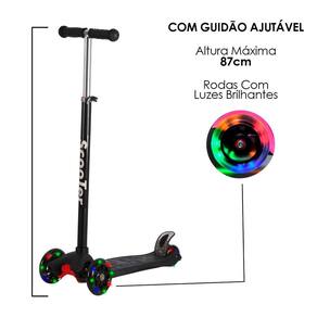 Patinete 4 Rodas Luzes Led Infantil Regulável Até 70kg Para Criança Menino Menina Rosa Azul Preto Verde Fácil Guarda Cor: Preto Patinete Infantil Dobrável e Ajustável, ideal para meninos e meninas que adoram se divertir com segurança. Fabricado com materiais de alta qualidade, este patinete é resistente e durável. Seu design ajustável permite que cresça com a criança, oferecendo conforto e estabilidade em cada fase. CARACTERÍSTICAS: - Indicado para crianças a partir de 3 anos - Altura ajustável - Peso máximo suportado: 70kg - Rodas dianteiras: 120mm com luzes - Roda traseira 100mm - Rolamento ABEC-7 - Produto certificado pelo INMETRODADOS - Tipo: Patinete Scooter 4 rodas - Gênero: Masculino e Feminino - Peso: 3,70 Kg - Medidas: 27x18x57 cm - Modelo: Scooter 4 rodas - LBN - 1006 1. O produto é novo Sim, todos os produtos são novos, somos a Ali Vende, seu momento, suas escolhas e nossa excelência. 3. Caso o produto não supra minha necessidade posso devolver ou trocar 5. O produto tem Sim, todos os produtos têm de 30 dias pelo fabricante contra defeito de fabricação. Se ainda houver alguma dúvida estamos a disposição para responder de segunda-feira a sexta-feira das 08:00 às 17:30. Marca: Não Informado
