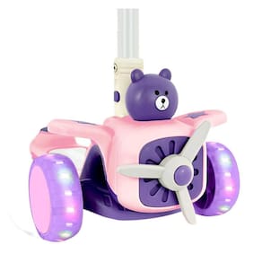O Patinete Aviãozinho Feliz é fofo Possui som, luz nas rodas, e é dobrável, facilitando no momento de guardar e transportar. Com sistema lean-to-steer, é só inclinar o guidão para o patinete virar.