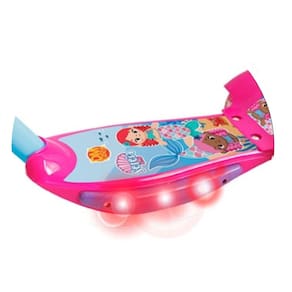 Patinete com cestinha e um lindo tema de sereia, exclusivo da DM RADICAL! Ele acende luz na base e emite som musical. Possui duas rodas traseiras, o que dá mais estabilidade para a criança que ainda está aprendendo a andar.