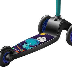 Marca: Atrio Modelo: Patinete com 3 Rodas Dinossauro Atrio - ES460 Cor Principal: Azul Altura do produto: de 60 a 85cm Rodas dianteiras: 12 X 24cm Rodas traseiras: 76 X 24cm Capacidade: até 35kgs Peso: 2,330 kg Idade recomendada: 3 anos Material do Produto: Base em Nylon reforçado, Deck em Polipropileno -PP-, Manopla em Borracha termoplática, Guidão em Alumínio formato em T e Rodas em Polipropileno -PP-, Garantia: 3 meses