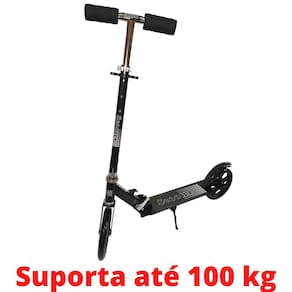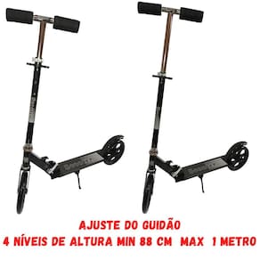 O patinete se adapta à altura da pessoa que está utilizando, possui um guidão ajustável