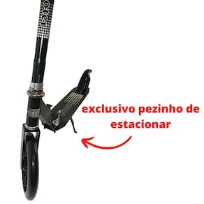Tem um freio na roda traseira, fácil de usar para frear ou diminuir a velocidade.