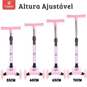 Patinete Dobrável Rosa Infantil 3 Rodas Com Led - Castela