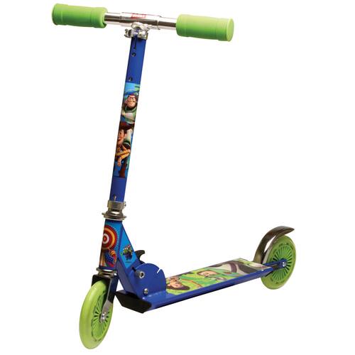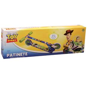 Os meninos vão adorar andar com um patinete que é todo decorado com o tema do filme "Toy Story". Ele é produzido em alumínio, rodinhas em silicone e manoplas de espuma.