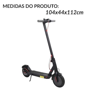 Medidas do patinete: 104 x 44 x 112 cm (altura x largura x comprimento)