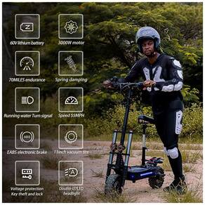 Acionamento duplo, motor único de 3.000 W, potência total de 6.000 W, super motor. A velocidade máxima é de 88 km. Muita potência para todas as suas necessidades de velocidade. A capacidade máxima de carga é de 350 kg. Lida com colinas íngremes de 45 com facilidade e está equipado com pneus de estrada, tornando o o ciclomotor elétrico ideal para adultos. Scooter de experiência de condução em modo de acionamento único e duplo o piloto pode alternar entre dois modos, modo ECO e modo de acionamento duplo. A autonomia normal no modo drive é de 120 km. A autonomia da trotinete elétrica depende de muitos fatores condições da estrada, clima, peso do condutor, travagens e acelerações frequentes, condução simples, dupla, velocidade 1, 2, 3, etc. Todo o carro é reforçado com material de liga de alumínio e é rápido e fácil de montar, podendo ser guardado no carro e em qualquer destino de transporte público. Freios a disco hidráulicos discos de e freios eletrônicos EBAS fornecem forte poder de frenagem e reduzem efetivamente a distância de frenagem. Pneus a vácuo off road de 11 polegadas aprox. 27, para maior conforto e maior capacidade off road As scooters elétricas REDDYDY são à prova dágua com classificação IPX 5. Bloqueio de chave de tensão A chave inicia a scooter elétrica e pode exibir a tensão da bateria em tempo real. Melhor proteção para a bateria e maior vida útil Marca: Não Informado