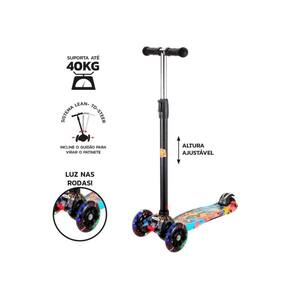 Patinete Flash Radical com Altura Ajustável e Luz nas Rodas O Patinete Flash Radical é muito legal e tem uma estampa colorida irada. Possui luz nas rodas e duas rodas dianteiras que dão mais facilidade na hora das curvas. Com sistema lean-to-steer, é só inclinar o guidão para o patinete virar. Principais Características: Suporta até 40Kg Com luz nas rodas Com altura ajustável +6 anos Possui inclinação Registro no inmetro 003 775/2022 Altura Máxima 81cm Referência: DMR6862 7899205968627 Marca: Não Informado