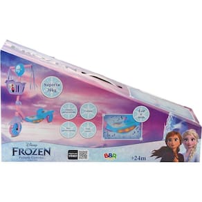 O Patinete de 3 rodas da Frozen é a escolha perfeita para aventuras congelantes e divertidas! Com altura ajustável de 60 a 70 cm e manoplas emborrachadas, ele traz conforto para pequenos exploradores de 2 anos ou mais. A base antiderrapante e o freio traseiro garantem segurança em cada voltinha, enquanto a cestinha frontal carrega tudo o que quiserem! E o melhor? Luzes LED e som na base que fazem cada passeio brilhar! Feito para os fãs de Frozen, da BBR Toys, é diversão garantida para crianças de até 30 kg!