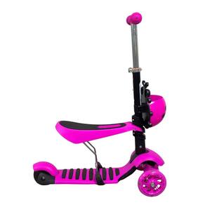 Patinete Infantil 3 Rodas 2 em 1 de Pé ou Sentado com Assento Cestinha Importway Bw-362 - Cor: Rosa