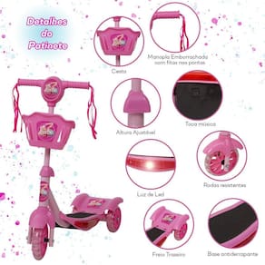 Características Principais: Guidão Ajustável, Base Antiderrapante, Freio Traseiro, Luz de Led.