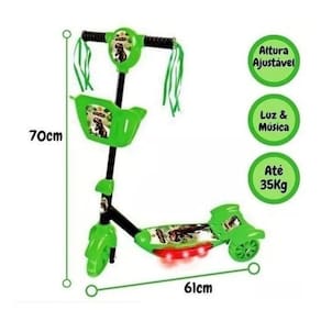 O Patinete radical possui 03 rodas, sendo 02 traseiras, o que dá mais estabilidade para a criança que ainda esta aprendendo a andar. É desmontável e prático. A estampa entre seus detalhes é de dinossauro.